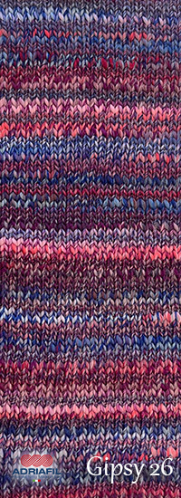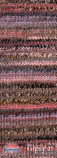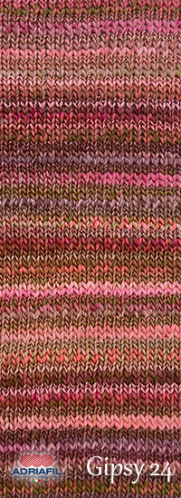 Gipsy è disponibile in una gamma di 10 tonalità multicolor, ottenute dalla miscela di 18 fiocchi di lana di colori diversi, per creare sfumature originali e di forte impatto visivo.