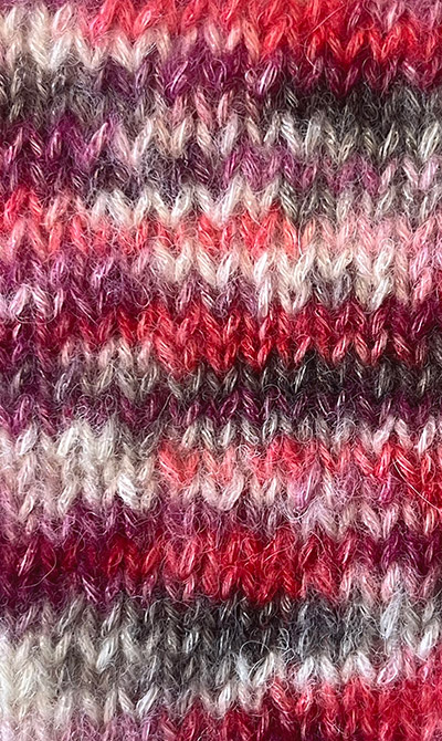 Il filato Toujours è caratterizzato da una stampa multicolor innovativa con un effetto screziato su base bianca, creato attraverso una doppia tintura in una sola passata. Questo processo conferisce a ogni maglia un effetto unico e irregolare, evitando il classico effetto rigato o a chiazze. Ogni maglia ha un colore diverso, che rende ogni progetto originale e unico.