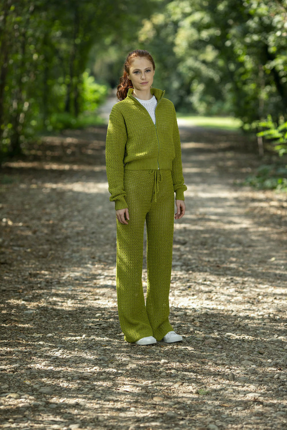 • Design: pantaloni a uncinetto con allacciatura a coulisse, lunghi alla caviglia.
