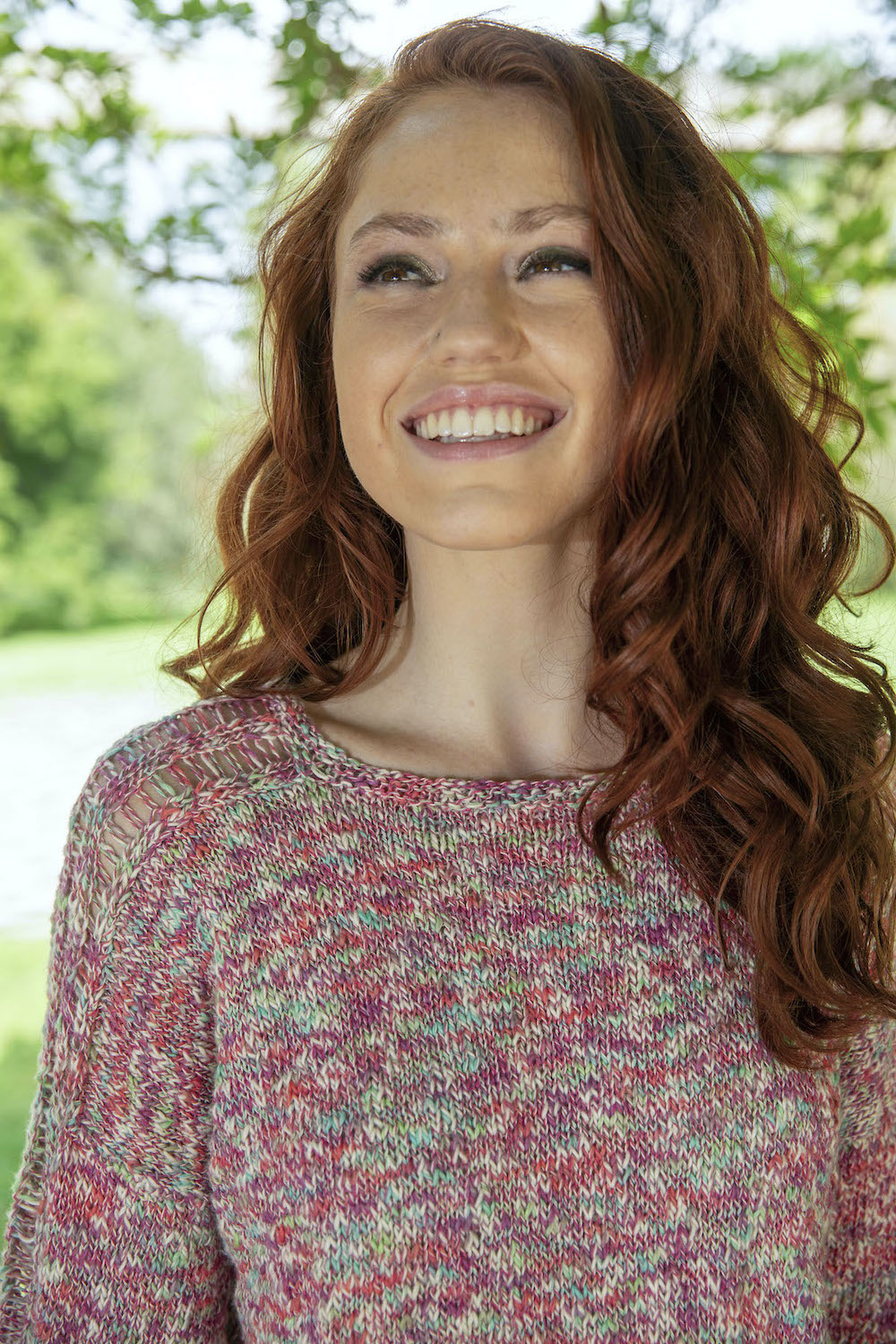 • Design: pullover leggero ai ferri, girocollo e con maniche lunghe a punti caduti per tutta la lunghezza.