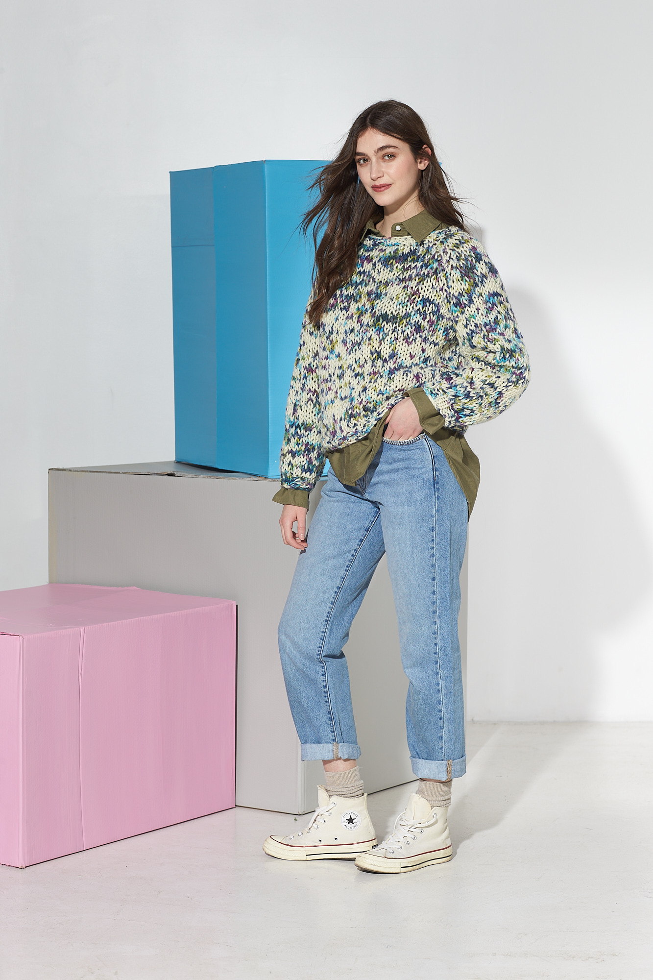 • Design: pullover classico ai ferri con maniche lunghe a raglan, lavorato largo per ottenere un effetto piรน arioso e country.